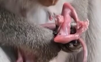 A weary mother monkey trembled under the canopy, her body exhausted and heart heavy. She had tried, over long hours, to bring her fragile baby into the world, but nature …