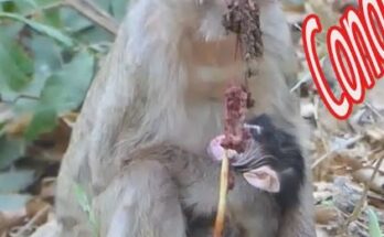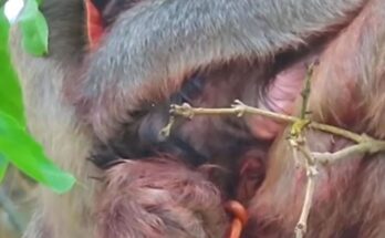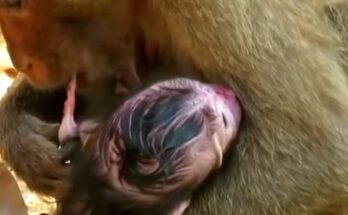Congrats!!! A precious newborn baby monkey snuggles closely into mommy’s warm embrace, creating the sweetest wildlife moment ever witnessed. The tiny infant clings gently to her soft fur, seeking comfort …