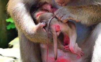 After birth, a little monkey may pull a baby’s cord roughly due to instinct, confusion, or inexperience. Young or first-time mothers often don’t understand what the cord is or how …