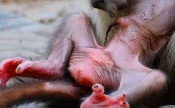 Gentle Monkey Mother Feeds and Comforts Her Little Newborn with Pure Affection Read More