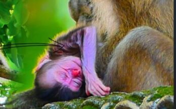 Tiny and newly born, the baby monkey lies close to the earth, her small body trembling with fragile life. Her eyes barely open, she breathes softly, weak yet full of …