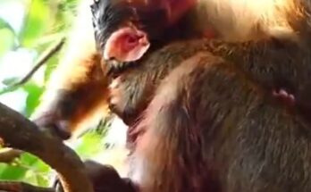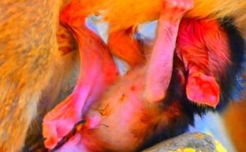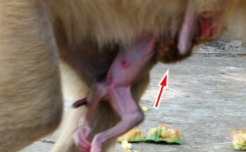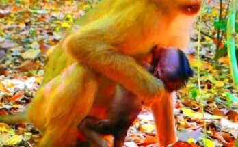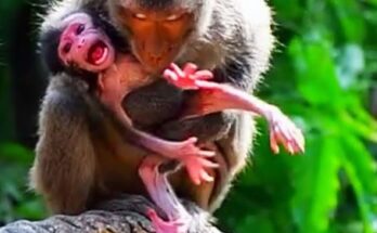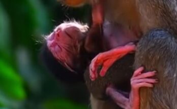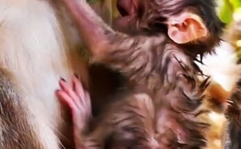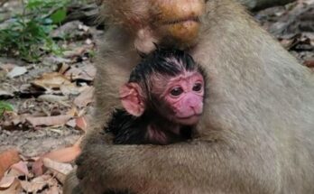 In a quiet corner of the forest, a monkey mother gave birth, bringing a tiny, fragile life into the world. Almost immediately, she adapted to her new role, carefully cleaning …