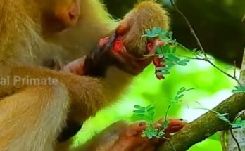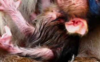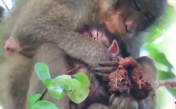Deep in the quiet forest, a brave mother monkey faced a difficult and exhausting moment as she prepared to give birth. Despite the pain and struggle, she remained determined and …