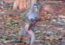 Young mother long-tailed monkey just gave birth to her first baby Read More