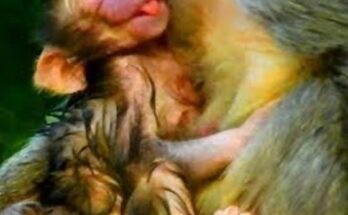 A tiny baby monkey enters the world, damp and fragile, trembling under the first light of day. Its mother leans close, wrapping it gently in her protective embrace. Soft fur …