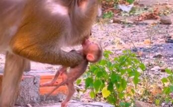 Baby monkey looks so thin and weak as mother struggles to produce enough milk Read More