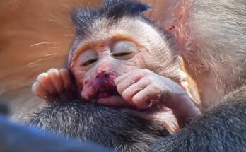 Deep within the heart of the jungle, a quiet but devastating crisis has unfolded—a newborn monkey lies weak and lethargic, its life hanging in the balance. The cause? Its mother …