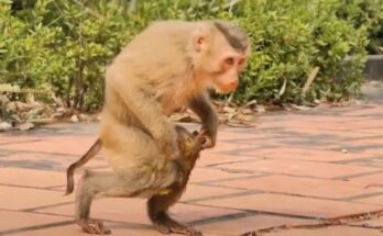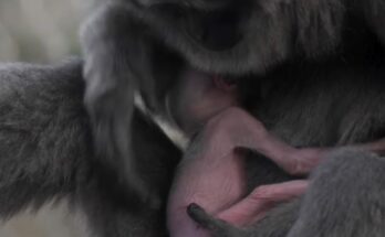 In the heart of the jungle, where life begins with a mother’s touch and nature’s rhythm, a tragic story unfolds. A tiny, frail newborn monkey lies trembling beneath a thick …