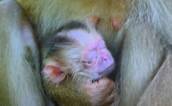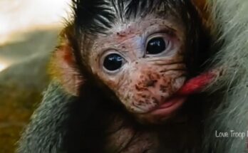 Despite the painful swelling in her eyes, little monkey Floran managed to find a moment of peace and comfort. Her small face, barely visible beneath the puffy, reddened eyelids, bore …