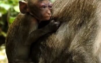 Under the warm afternoon light, a tiny baby monkey sits quietly in his mother’s arms. His small face, once full of playful curiosity, now appears swollen and tired. One of …