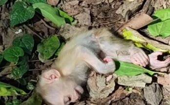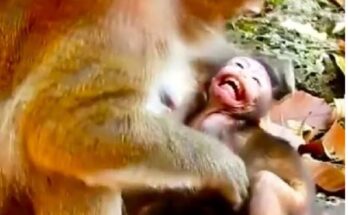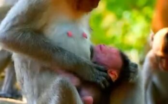 Under the warm afternoon light, a tiny baby monkey sits quietly in his mother’s arms. His small face, once full of playful curiosity, now appears swollen and tired. One of …