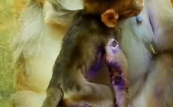 Hungry and weak, the little monkey moved slowly through the forest, trying his best to stay strong even though his tiny body felt tired. The sunlight filtered through the leaves …
