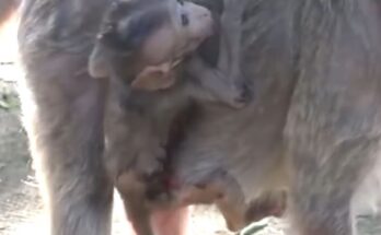 Good Mother Monkey Tenderly Carries Her Poor Little Baby Everywhere for Safety Read More