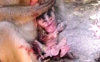 Joy fills the air as the mother monkey gently cradles her newborn, her eyes shining with pride and relief. After hours of effort and patience, she has successfully brought a …
