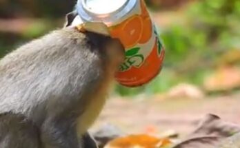 The poor baby monkey finds itself in a frightening situation after its head becomes stuck inside a discarded can. Confused and scared, it struggles helplessly, unable to understand why it …