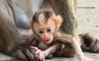 A tiny newborn monkey lets out soft, trembling cries as the last drops of water slide from his delicate fur. His mother gently finishes bathing him, her careful hands warm …