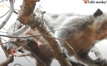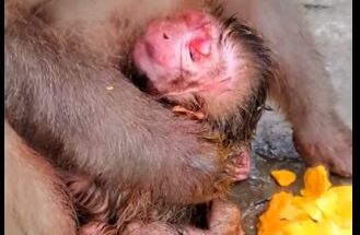 Synthesize scenes of mother monkeys giving birth to baby monkeys too hard