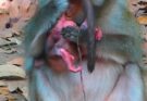 Baby Orangutan Snatching Carrots From Momma