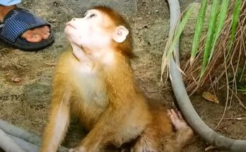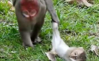 Adorable Moment! Mother Monkey Teaches Her Baby to Walk Read More