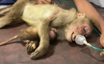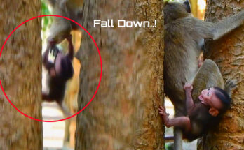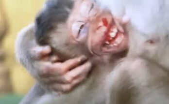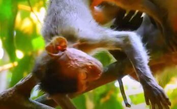 In a heartbreaking scene that highlights the fragile bonds of survival in the animal kingdom, a newborn monkey struggles as its mother cannot provide enough milk to sustain it. This …