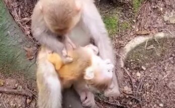 “A Wild Monkey Family’s Struggle: The Heartbreaking Tale of a Baby Monkey’s Kidnapping