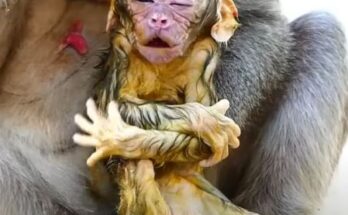 The mother monkey complained that her baby monkey was too dirty, so she immediately bathed it. Read More