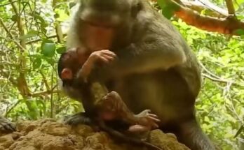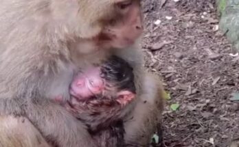 A heartbreaking incident unfolded when a newborn monkey tragically fell from a tall rock, approximately 15 meters high, in a wildlife sanctuary. Observers linked the incident to the inexperience and …