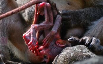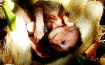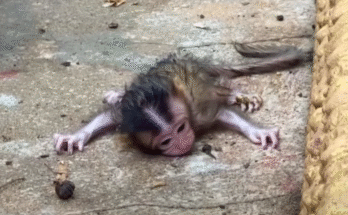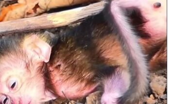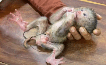 In the dense canopy of the jungle, a small, sorrowful cry pierced the stillness — the desperate wails of a newborn monkey, barely days old. Fragile, pink-faced, and trembling from …