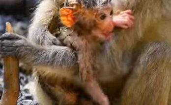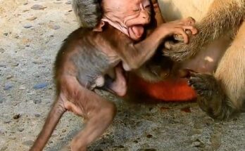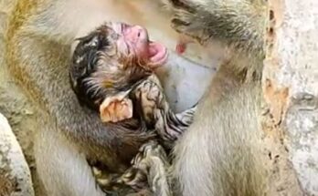 Loving Bond! Mother Monkey Drinks Milk While Feeding Her Tiny Baby Monkey With Endless Care. Read More