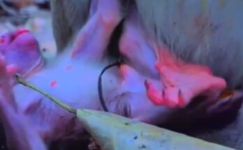 A young long-tailed monkey experienced a beautiful and unforgettable moment today as she welcomed her very first baby into the world. The tiny newborn clung gently to its mother, its …
