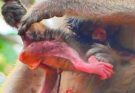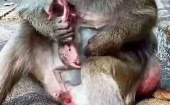 A loving mother monkey gently welcomes her newborn into the world, her eyes filled with pride and warmth. Today marks a beautiful beginning as she cradles her tiny, healthy baby close to her chest. The newborn clings softly, feeling the comfort of her heartbeat and warmth. With careful movements, the mother cleans and protects her little one, showing pure instinct and endless love. The bond between them grows stronger with every second. Surrounded by nature’s calm, this precious moment reflects life, care, and devotion. It is a joyful day, as a strong and healthy baby monkey begins its journey under a mother’s loving watch.