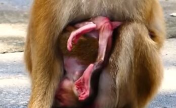 Once the fear faded, the little monkey clung to her chest, pressing his face into her fur. The mother carried him to a safer branch, reminding him through gentle touches that he wasn’t alone—and that her love and protection would always guide him through the forest.