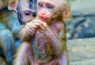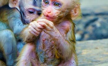 A tiny newborn monkey lies quietly, its body fragile and trembling with weakness. Its eyes barely open, and every small movement seems to take great effort. The world is still new and overwhelming, filled with unfamiliar sounds and light. But beside the baby, its loving mother stays close. She gently lifts the little one into her arms, holding it carefully against her warm chest. With patient care, she cleans its soft fur and softly nuzzles its head. Though the newborn appears weak, the mother’s steady presence offers comfort, protection, and hope, giving her baby strength to face another day.