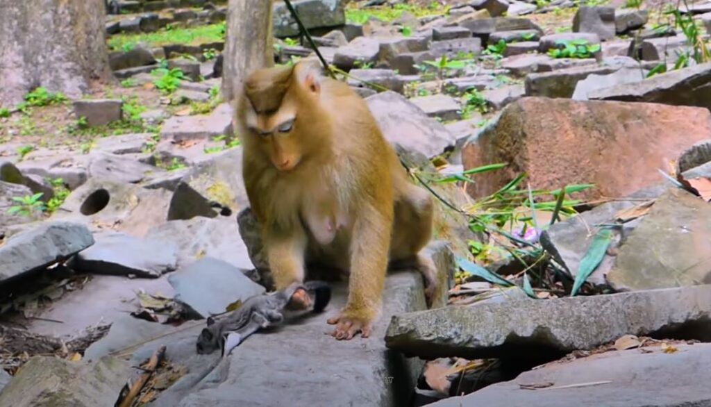 Every so often, the squirrel pauses briefly to catch its breath, perched on a high branch. From its vantage point, it watches the monkeys below, their faces a mixture of concentration and delight. The monkeys are not malicious, at least not in the way a predator might be. Their playful nature drives them to engage in these games, but to the squirrel, the chase is no less terrifying. It has learned over time that the only way to survive in the jungle is through speed and wit, and today, those skills are put to the ultimate test.