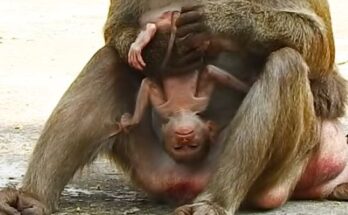Everything around feels silent, and the baby monkey waits hopefully for its mother to return soon back.