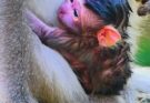 A young mommy monkey gently cradles her precious newborn, doing everything she can to keep the tiny baby safe and warm. Though she is still inexperienced, her natural motherly instinct guides her every move. She carefully holds the baby close to her chest, grooming its soft fur and watching over it with deep concern. The newborn is small and fragile, depending entirely on its mother for comfort and protection. Despite the challenges of finding food and staying safe in the wild, the young mother remains devoted. Her love and determination show the powerful bond between mother and child, even in the animal world.