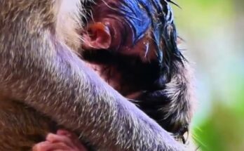 The young mother monkey has just experienced one of life’s most magical moments—welcoming her very first baby into the world. With tender care and instinctive love, she cradles her tiny, fragile infant, marveling at every movement and delicate sound. Around her, the forest seems to pause, celebrating this miraculous new life. Friends and family monkeys watch with curiosity and admiration, recognizing the bravery and devotion of the new mother. Her eyes shine with pride and wonder, knowing she will nurture, protect, and teach her baby. This first bond marks the beginning of countless joyful, tender, and unforgettable moments together.