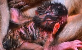 Delicate New Life Arrives as Mother Monkey Gently Cares for Her Tiny New Baby