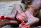 A loving mother monkey cradles her fragile newborn close to her warm chest. After the long and tiring birth, she gently cleans the tiny baby with soft, careful movements. The newborn’s eyes are barely open, and its small fingers cling tightly to her fur. She whispers soothing sounds, calming the baby’s first cries in the quiet forest air. With patience and devotion, she guides her infant to nurse, ensuring it receives the strength it needs. Every touch is tender and protective. In those peaceful moments, her deep instinct and unconditional love create a safe beginning for her precious little life.