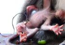 Mom monkey gently cleans her newborn baby immediately after birth with loving and careful movements. She holds the tiny infant close, using soft hands and soothing gestures to remove birth fluids and keep the fragile body warm and safe. The mother stays attentive, carefully licking and grooming every part of the baby, ensuring comfort, cleanliness, and bonding in those precious first moments of life. Her gentle actions show deep instinct and affection, helping the newborn survive, feel secure, and begin life with warmth and protection from its devoted mother. We watch this touching moment of natural maternal care and love.