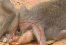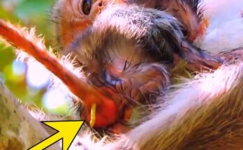 In a quiet natural environment, a mother monkey experiences the powerful moment of giving birth to her baby. Surrounded by trees and the gentle sounds of wildlife, she relies on instinct and strength to guide her through the process. With patience and determination, the mother carefully brings her newborn into the world. Soon after, the tiny baby begins to move, showing signs of life and health. The mother gently cleans and holds her infant close, creating an immediate bond that is both protective and nurturing. This real-life moment highlights the resilience and beauty of nature, where survival and care go hand in hand. The successful birth reflects not only the mother’s endurance but also the importance of a safe, natural habitat. It is a touching reminder of how animals, just like humans, experience deep connection, responsibility, and love from the very beginning of life.