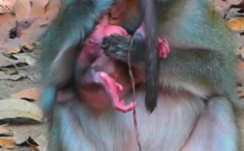A heartbreaking and dramatic moment unfolded in a forest sanctuary when a tiny monkey fell from the highest branch of a towering tree, leaving a crowd of onlookers stunned and deeply concerned. The young primate, estimated to be just a few months old, had been playfully climbing after its mother when a misstep caused it to lose its grip and plummet through the canopy to the forest floor below.