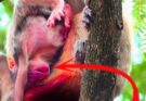 A tiny baby monkey becomes a silent victim when his own father takes him away from his mother. Separated too soon, the infant is left without warmth, milk, or protection. Weak cries echo softly as hunger drains his strength and fear surrounds him. His small body trembles, searching for comfort that never comes. Without his mother’s care, every moment becomes a struggle to survive. This heartbreaking scene reveals the harsh reality of life in the wild, where even family bonds can break under instinct and chaos. The baby’s fragile cries stand as a quiet plea for help and compassion.