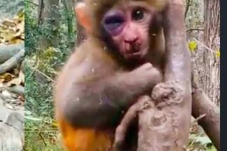 Under the quiet silver glow of the moon, a devoted mother monkey cradles her sick baby close to her chest. Every tiny whimper pulls at her heart, yet she never leaves his side. Through long, painful nights, she gently strokes his soft fur, offering warmth, comfort, and reassurance. Though exhaustion weighs heavily on her small body, her love is stronger than sleep. She listens to his fragile breathing, alert to every change, ready to protect him from harm. With patience and fierce devotion, she sacrifices her rest and safety, proving that a mother’s love shines brightest in the darkest hours.