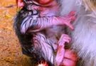 A tiny newborn monkey clings tightly to her mother’s soft fur, seeking warmth and safety in a world that feels so big. Her fragile fingers curl instinctively, holding on with surprising strength as she listens to the steady rhythm of her mother’s heartbeat. Wrapped against her mom’s chest, she finds comfort in familiar scents and gentle movements. Every small breath she takes is filled with trust and quiet hope. The mother moves carefully, protecting her baby from danger while offering constant reassurance. In that tender embrace, love becomes a shield, and the newborn feels safe, cherished, and deeply connected.