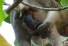 After scanning the riverbank for a potential solution, the mother monkey decided to attempt the crossing. She was experienced in swimming, a skill rare but not unheard of among her species. However, her baby had no such knowledge, relying solely on its mother for safety. The mother entered the water cautiously, her baby clutching her with an iron grip.