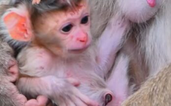 An adorable baby monkey found itself in a tiny bit of trouble after curiously poking its head into an empty can. At first, it seemed like a playful adventure, as the little monkey explored the shiny object with wide-eyed excitement. But soon, curiosity turned into confusion when it couldn’t pull its head back out. The baby monkey stumbled around, unsure and slightly frightened, its small hands trying to tug the can loose. Nearby, other monkeys watched with concern, while a protective mother quickly rushed over. With gentle care and patience, she tried to calm her baby, softly guiding and pulling until the can finally slipped free. Once rescued, the baby monkey clung tightly to its mother, seeking comfort and safety. The moment was both heartwarming and a reminder of how curiosity can sometimes lead to unexpected challenges, even for the cutest little creatures in the