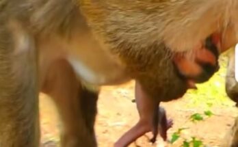 In the quiet stillness of the early morning forest, a tender and emotional scene unfolded—a newborn monkey, barely hours old, clung with all its strength to the warmth and comfort of its mother, Libby. Still adjusting to the world, the baby’s tiny hands gripped Libby’s soft fur tightly, trembling with every movement. It was an adorable yet heartrending struggle—a symbol of both vulnerability and the powerful instinct for survival.