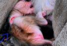 Mother monkey Ramy cradles her fragile newborn with unsure, trembling arms, trying her best despite inexperience. The tiny infant squirms softly, searching for comfort and warmth, while Ramy adjusts her hold again and again. Her gentle eyes show both confusion and deep love, as instinct slowly begins to guide her. Each small movement reveals her determination to care, even when she doesn’t get it right at first. The bond between them grows stronger with every moment. Though her grip is imperfect, her heart is devoted, and with time, she will learn to hold her baby safely and tenderly.