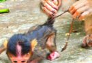 Baby monkey Calvin lies quietly, his tiny body weak from severe dehydration. His once playful energy has faded, leaving him too fragile to move or call for his mother. His eyes look tired, and every small breath shows how much he is struggling. Without quick care, Calvin may not regain his strength. Kind hands rush to bring him fresh water and gentle nourishment, hoping to save his life. Slowly, they comfort the little monkey and keep him warm. Everyone hopes the fragile baby will recover soon. With patience, care, and love, Calvin may find the strength to stand again.